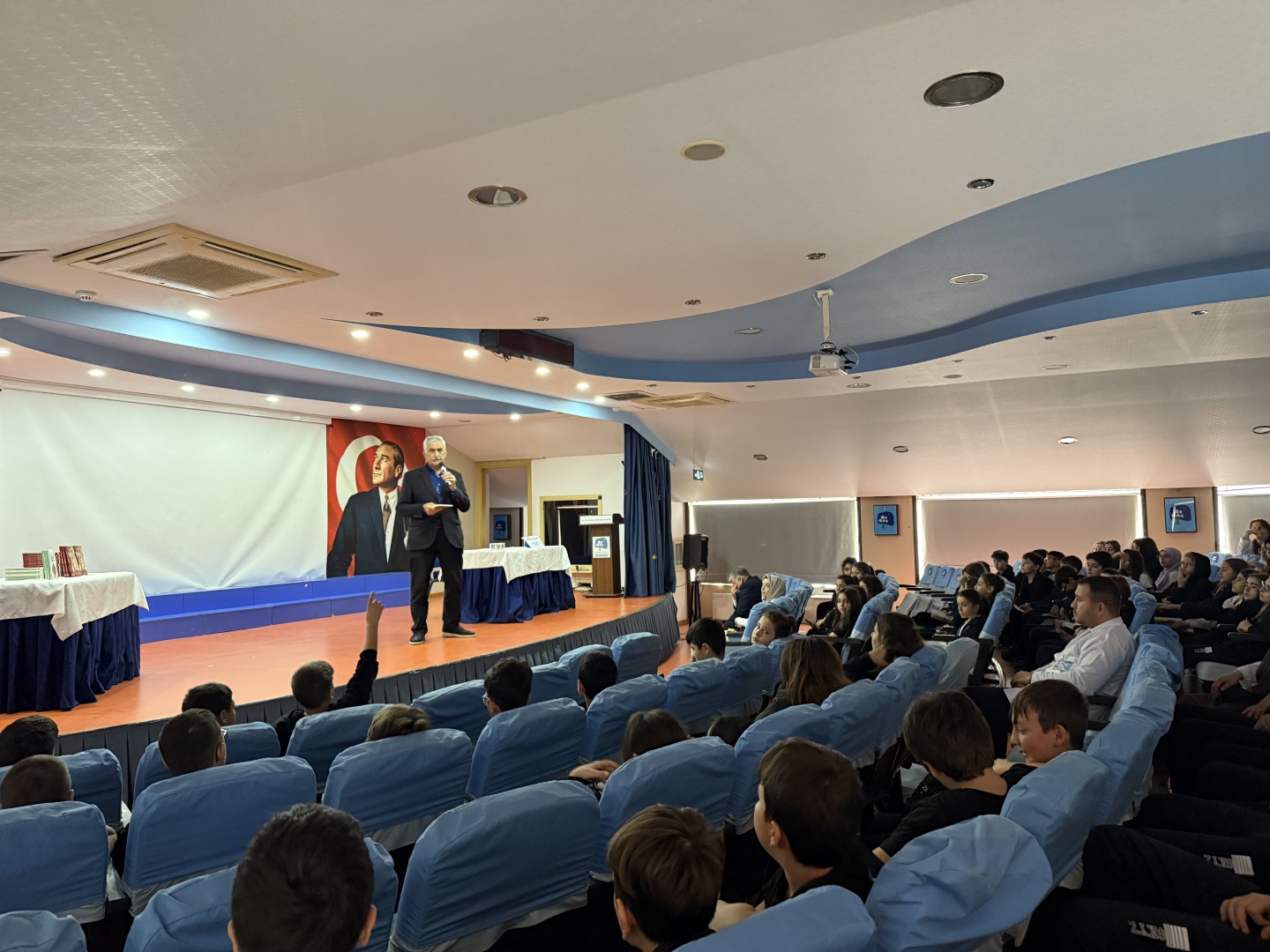 Bugün okulumuzda, Ortaokul ve 9. sınıf öğrencilerimizin katılımıyla Abdullah Yıldız Hocamızın “Namaz” konulu söyleşisini büyük bir ilgi ve heyecanla dinledik.