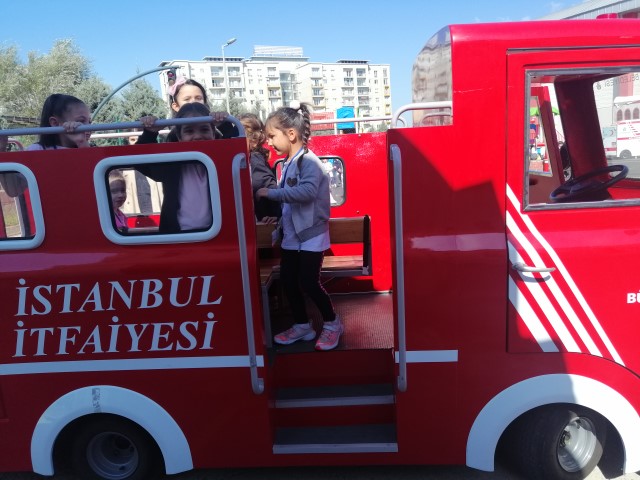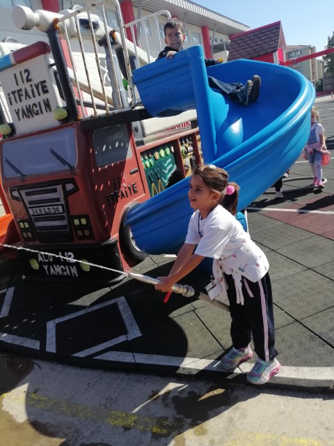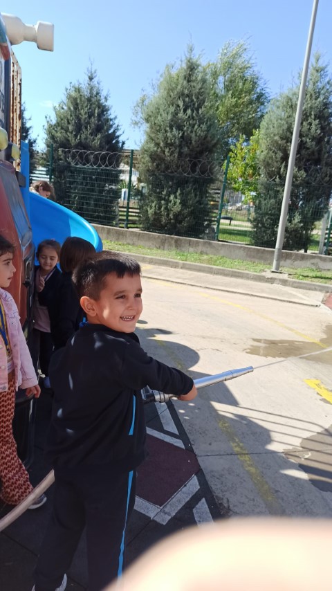 Yangın söndürme simülasyonu yapan, itfaiye araçlarına binen ve itfaiye parkında oyunlar oynayan öğrencilerimiz; yeni bir meslekle tanışmanın heyecanını ve keyfini doyasıya yaşadılar.