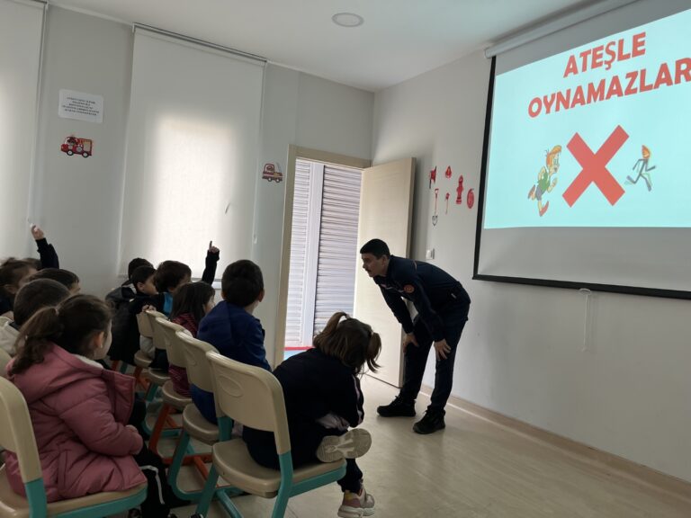 Anaokulu öğrencilerimiz, kahraman itfaiyecilerimizi tanımak ve yaptıkları işleri öğrenmek için onları yerinde ziyaret ettiler. Yenişehir İtfaiye İstasyonu’nda bulunan çocuk eğitim