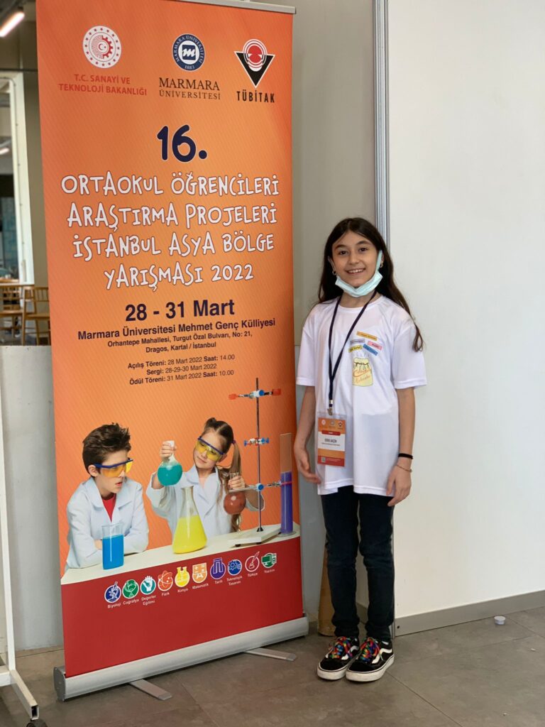 TÜBİTAK 16. Ortaokul Öğrencileri Araştırma Projeleri İstanbul Asya Bölge Yarışması finalinde okulumuz 5. sınıf öğrencilerinden Duru AKÇİN finale katılmaya hak