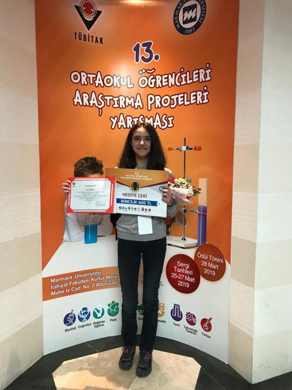 Özel Gökyüzü Ortaokulu 7. sınıf öğrencisi Ayşe ÇAVUŞOĞLU, TÜBİTAK Bilim İnsanı Destek Programları Başkanlığı tarafından 2018-2019 Eğitim-Öğretim yılında düzenlenen 12.000