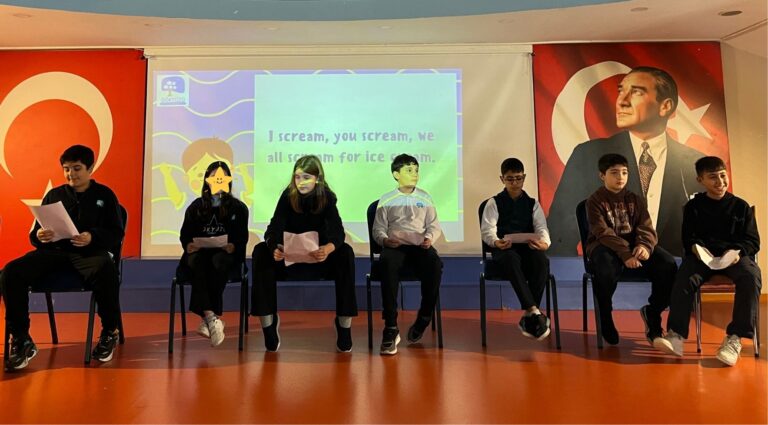 5. sınıf öğrencilerimiz, Yabancı Diller Zümremiz tarafından düzenlenen “Tongue Twister” etkinliğinde İngilizce tekerlemeleri hızlı bir şekilde söylemeye çalışarak İngilizce dil