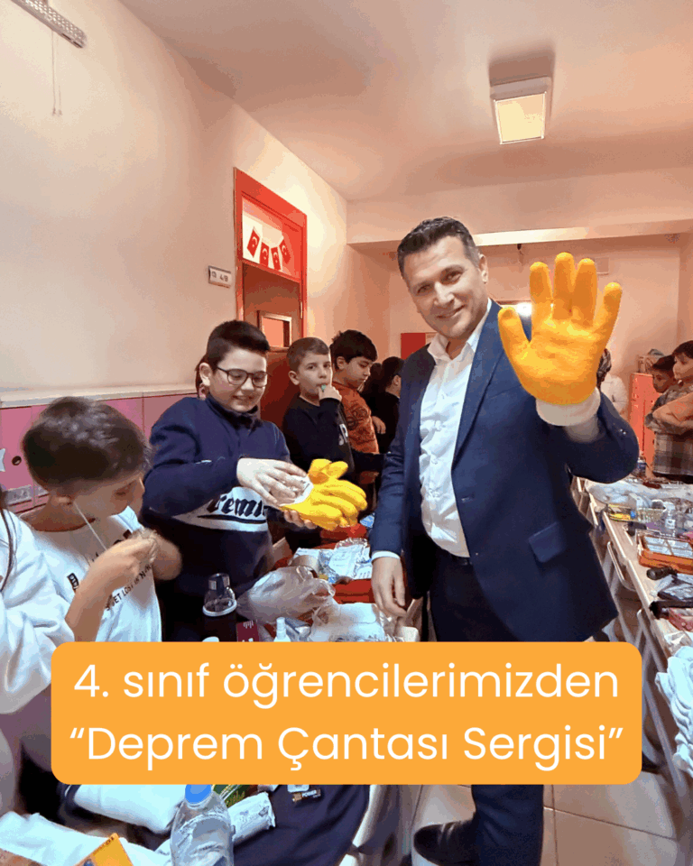 4. sınıf öğrencilerimiz deprem bilincini artırmak için “Deprem Çantası Sergisi“ düzenlediler. İlkokul Müdürümüz Sinan Semiz ve Kolej Müdürümüz Kamil Koç