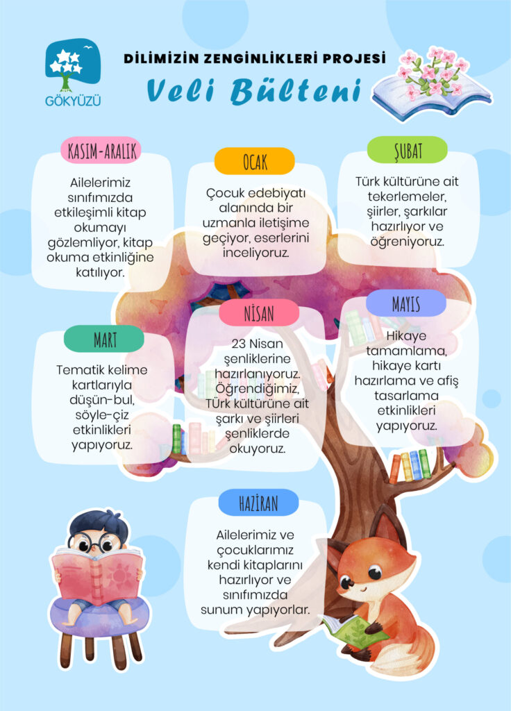 Dilimizin Zenginlikleri Projesi kapsamında anaokulu öğrencilerimizle 2023-2024 eğitim öğretim yılı boyunca gerçekleştireceğimiz etkinliklerimizi inceleyin.