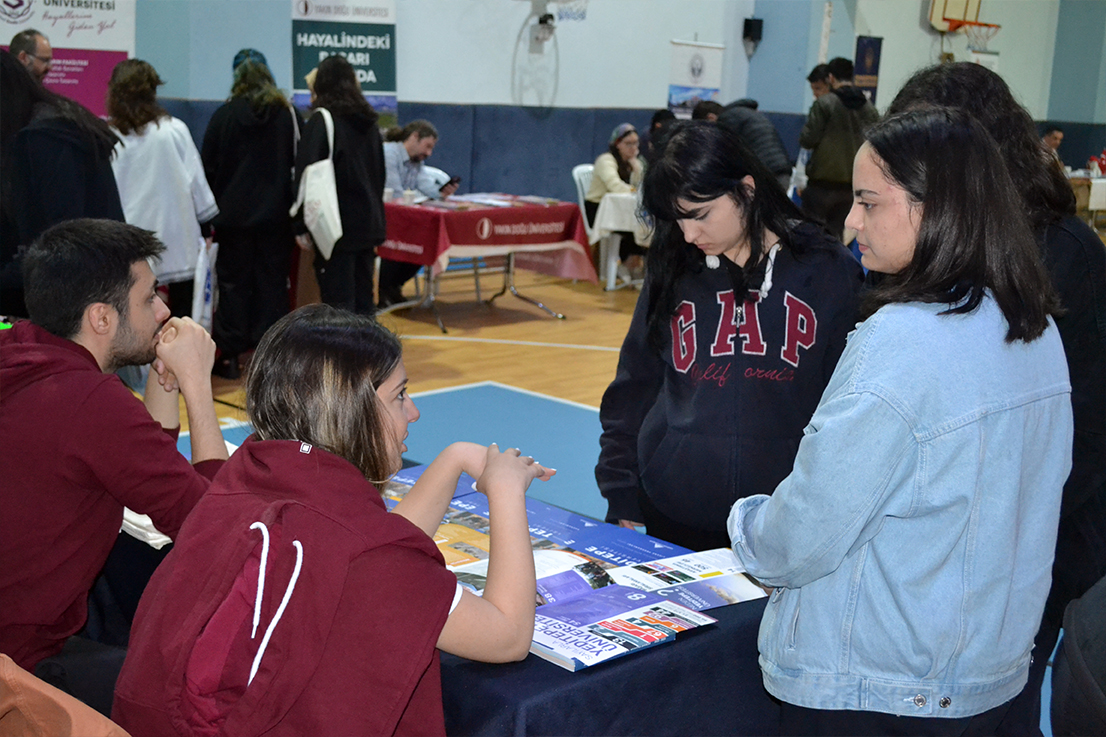 Üniversite sınavına hazırlanan öğrencilerimiz ve tüm lise öğrencilerimizin yanında davet ettiğimiz devlet okullarından gelen misafir öğrenciler de merak ettikleri bölümleri, bölümlerin özelliklerini, üniversitelerin imkânlarını, üniversitenin yaşam alanları ve sosyal olanakları gibi bir çok konuyu birinci ağızdan dinleme imkanı buldular.
