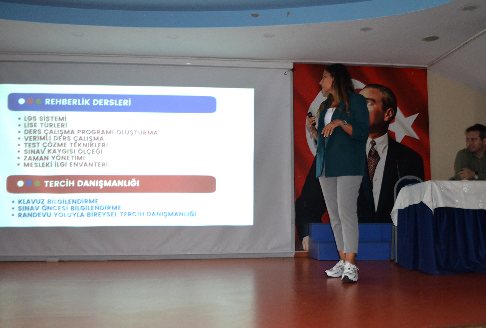 Seminerde liselere geçiş sistemi, lise türleri ve okulumuzda sınava yönelik gerçekleştirilen faaliyetlerden bahsedildi. Sınav hakkında bilinçli hareket etmeye, okulla iş birliği içinde olmaya ve öğrenci-veli-öğretmen iletişiminin önemine vurgu yapıldı.