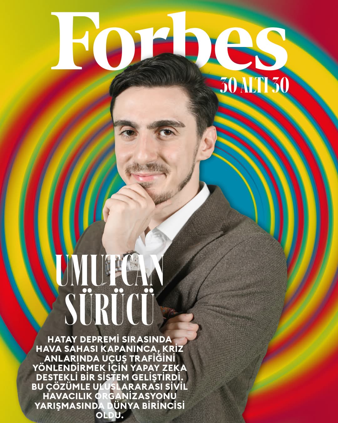 Hatay Depremi sırasında ekip arkadaşlarıyla birlikte tasarladığı ATC Yönlendirme ve Destek Sistemi ile daha önce ICAO’nun Kanada’daki küresel yarışmasında dünya birinciliği, “TEKNOFEST – Havacılıkta Yapay Zeka Yarışması”nda Türkiye birinciliği elde eden mezun öğrencimiz Umutcan Sürücü Forbes Dergisi tarafından ilham veren 30 genç listesinde yer alarak bizleri bir kez daha gururlandırdı!