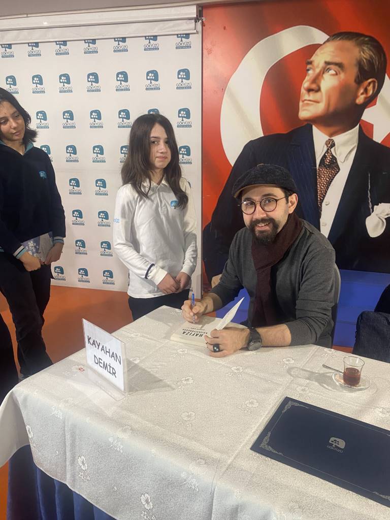 Özel Maltepe Gökyüzü Eğitim Kurumları Türkçe-Edebiyat zümresi, 7, 8, 9 ve 10. sınıf öğrencilerimizi büyük bir ilgiyle okudukları “Hafıza Koleksiyoncusu”, ”Evvel Zaman Koleksiyoncusu” ve ‘”Pera Palas’ta Gölge Oyunu” kitaplarının yazarı Kayahan DEMİR ile bir söyleşide buluşturdu. Yazarımız ile bir araya gelen öğrencilerimiz keyifli bir sohbet gerçekleştirdiler. Hem okudukları kitapla ilgili hem de yazarlıkla ilgili merak ettikleri soruları sorma fırsatı buldular.